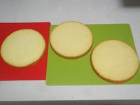 我做的戚风蛋糕表层不太完美,没有用。分了4部分,用了3片2cm的蛋糕片。