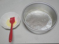 *下厨房里(彼岸的狐狸的原配方)是用锡纸把整个八寸圆模全包满了,这样也可以。我是怕蛋糕周围会咯上锡纸的印记,就改成涂融化的黄油了,弊端就是倒入慕斯糊之后,最后震模的时候要小心,轻一些,不然慕斯糊容易流到外面去。