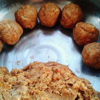 把馅料混合以后搓匀,然后分成份儿。(我的是30克一份)