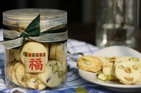 用的是蓝带学校的曲奇配方,我将配料中的杏仁换成了开心果,特点是加入了少量的柠檬皮屑和盐来增加微妙的清爽和层次感