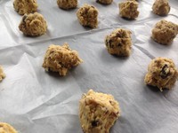 加入如图杂七杂八的干货,巧克力可以稍微切碎些,可以保证每块饼干都有可爱的巧克力^