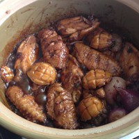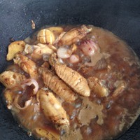 加水没过鸡翅,放适量冰糖,大火收干即可