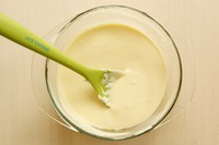 一次加入一个蛋黄,搅拌均匀。此步骤结束后即可用万能筛过滤。由于乳酪与砂糖结合过程中多少都会有一定颗粒存在因此需要过滤,让乳酪糊更细腻,目的烤出口感更细腻的乳酪蛋糕。PS:此次其实我没过滤,由于有颗粒存在,最后切的截面就会易产生空隙