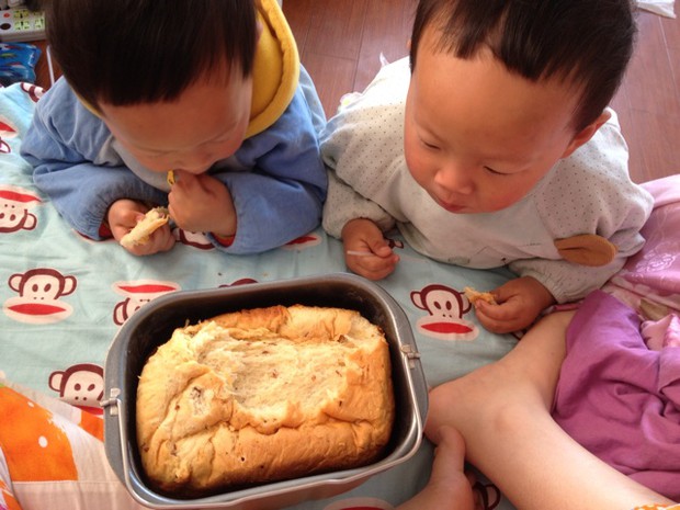 看看高度!在面包桶里没出来的时候已经涨出面包桶了!不要以为是1000g的哦!哈哈!
