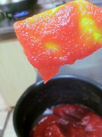 然后剩下的继续加热,至勺子上能够厚厚挂糊,果糊流动性差,最终的状态:糊要挂在勺子上只会滴几下然后有个尖尖也不掉下来~~~