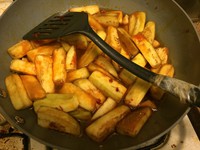 茄子和鸡肉洗净,茄子切成比较大的条状,鸡肉切成丁。这里我用的这根茄子比较大,接近500克。因为后面会煮比较长时间,如果茄子切成太小块煮一煮就不见了。茄子可削皮和不削,看个人习惯。