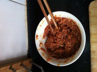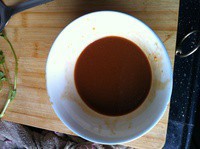 等着肉馅入味的时候调芡汁。将蚝油,番茄沙司,蒜末,生抽,辣椒油加少许水混合,加入淀粉。先少加些水,等一会儿蒸茄子之后还会有些许汤汁,把那些汤汁也加入芡汁中,一点儿营养都不浪费。