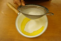 奶锅离火,筛入低筋面粉