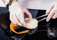 再倒一点特级初榨橄榄油于盘中,使其颜色看起来更亮丽。并且再撒一些胡椒末和黑蒜来调味,就可以享用了。