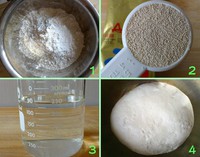 A料:准备好500克面粉,将80克糖和5克酵母融入240克水中,倒入面粉中搅拌,揉成偏硬一点点的面团。