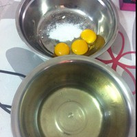 把鸡蛋分好,蛋黄,蛋清各分到盘中