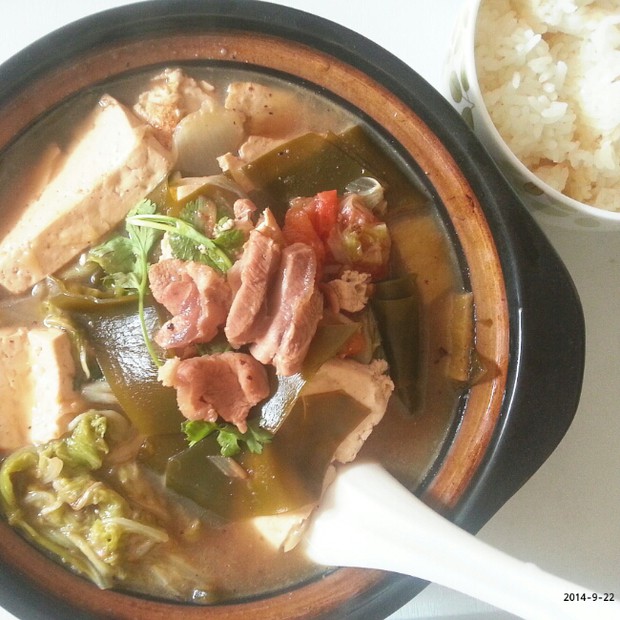 秋冬吃羊肉有温补的作用。单纯的羊肉炖白菜太单调今天我们加入海带、豆腐、西红柿也可以加入粉丝等你喜欢的食材