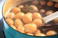 当鹌鹑蛋开始从浅色变成深色的时候,就可以关火了