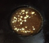 油爆蒜头米椒加入汁水烧开关火,淋到生菜。