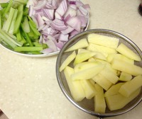 三、配菜中的土豆这样处理后会很好吃,如果没有时间,单纯的切片跟配菜一起炒也是不错的。