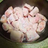 猪蹄洗净切小块,抹盐腌制30分钟,期间准备炖肉佐料。