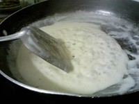 七、白酱其实就是白汁,就是更稠一些。面粉大概两匙,用少许冷水搅化,注意是冷水哦!就像开生粉水一样儿的,然后和牛奶mix在一起,要是不够稠就再加,最后呈现出来和糊糊一样就差不多了,不建议太稀。它变冷后会变得更加稠,所以待它稍凉后制作会好些。加少许的盐可以吊起牛奶的味道,使其更有奶香味。