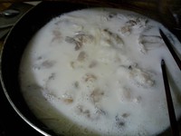 六、鱼片要一片一片地放入锅中,否则会搅成一团。
