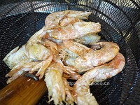 另起锅,烧热油至200度高温,下虾,变色后立即捞出沥油;如果不喜欢炸的方式,可以改中小火煎黄即可