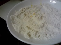 再取一个浅盘,倒入适量的面粉,尽量摊开。