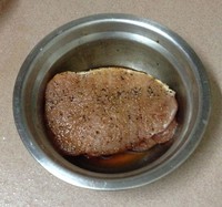 5. 大火烧开平底锅放入猪排,两个煎好就成功啦。