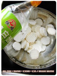 切好山药片就速度放入水中,使其完全浸泡一两分钟,换水再清洗一遍去多余醋味即可使用。