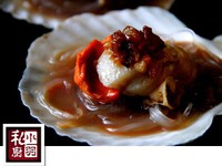 接下来就是把粉丝分成几份,盘成鸟窝状摆在扇贝壳里,把扇贝肉摆在粉丝上面。
