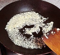 5.锅内倒入少许油,加入蒜末煸炒出香味。