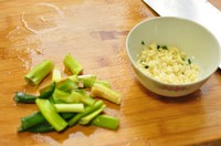 加入蒜泥,少许盐,花雕酒,略炒一下。