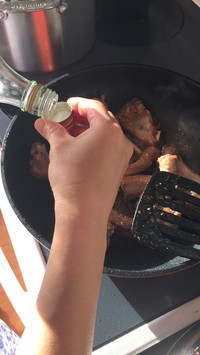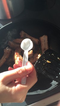 往里一倒肉然后在糖浆里炒上色