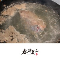 大火煮沸后改小火炖50分钟,让猪肝内部熟透。捞出晾凉,待切片