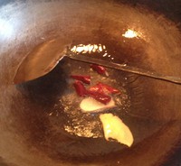 五花肉事先在热水里焯一下捞出,再放入爆香生姜片和辣椒的锅里一起炒,小火逼出五花肉的肉