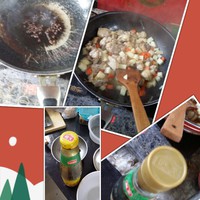 锅热放油/少放油/,油热放花椒大料/记得把花椒大料捞出来/。没有也可以不放。十三香也可以。然后葱姜蒜。放鸡肉炒。我加了些生抽蚝油。反炒到7成熟。放红萝卜。土豆。翻炒。炒到红萝卜变红。