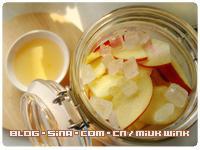 苹果上浮冰糖大部分融化。最上面几个没浸到的,用干净消毒过的筷子戳下去!(╯▽╰)