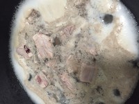 冰糖融化掉开始冒泡马上放刚才炒好的排骨+蒜,让每一块排骨都均匀上色,翻炒几下,注意?一定是糖刚一冒泡就放排骨,不然时间长了糖会变苦!