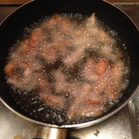 油锅烧热,将腌好的鸡肉丢到油锅里,至于油是几分热的,请参照其他肉类的炸法…
