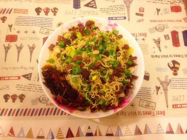 翻炒均匀过后,就可以起锅了。如此简单又好吃的炒泡面,做给你心爱的人吃吧?