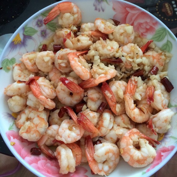 往锅里倒油,不等油热就把蒜和辣椒倒入锅内翻炒,炒香后,倒入大虾,翻炒3分钟,变色后,倒入少许盐和胡椒粉,翻炒几下就可以出锅了!营养美味的大餐做好啦!