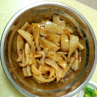把酱汁和切好的鱿鱼拌起来腌制半小时。