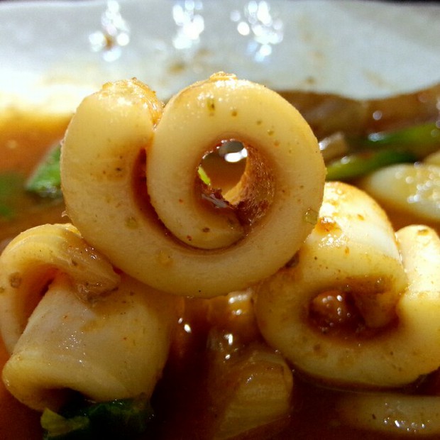 借鉴了下厨房里腌制鱿鱼的方子,用自己喜欢的方法把鱿鱼煎出来,鱿鱼QQ的,很好吃
