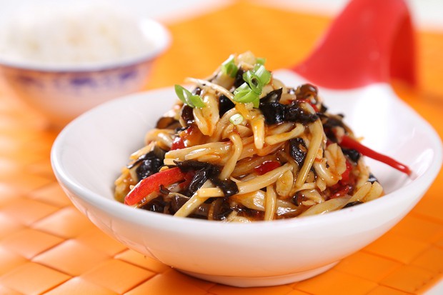 待烹饪结束后,放入醋和葱丝,快速搅拌均匀盛盘即可。
