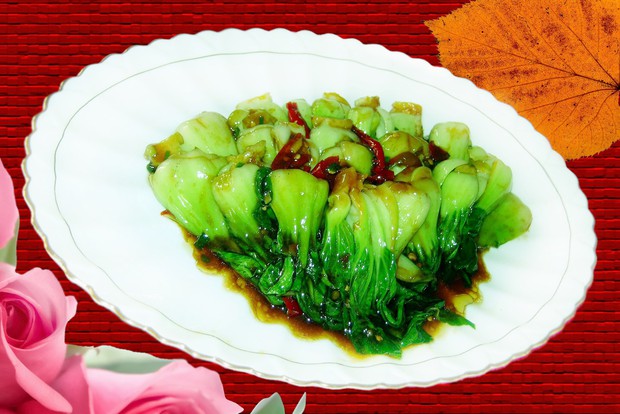 菜心又名油菜、青菜,为十字科花科植物油菜的嫩茎叶。主要成分有蛋白质、钙、磷、铁、胡萝卜素、叶绿素、维生素C等。其中,叶绿素的含量极为丰富。油菜心味辛、性温,具有散血消肿功效。含钙、磷、铁外,还含有胡萝卜素和丰富的维生素C。此菜系以嫩油菜心为主料,佐以多种辅料烹制而成。成菜后,菜心脆嫩,色泽酱红,咸甜酸辣兼备,葱姜蒜香浓郁。适宜:虚劳怔忡、食欲不振的和脾胃虚弱的青年人食用。