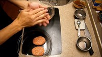 可以用竹签插进去试试看熟没熟(据说有透明液体出来就OK了)然后将汉堡肉装盘。