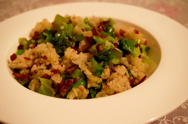 一、腊肉比较咸,所以要先煮一边,另外炒饭上的盐也要少放。二、生菜放进去之后就关火,那样可以保持生菜的新鲜度。