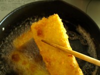在170度左右的油锅里,炸至浮起呈成金黄色,即可捞出
