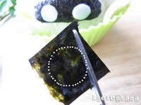 再用海苔剪出比11小一些的瞳孔,涂沙拉酱贴在眼球上