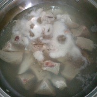 换新水,加姜片料酒煮至肉块能用筷子扎透