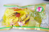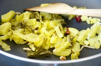 加入酸菜,翻炒,加入少量的盐、糖调味,快速出锅