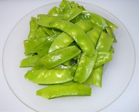 荷兰豆边上的筋拉掉,洗干净。荷兰豆可以一折为二,也可以保持原样