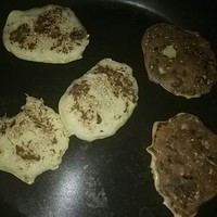 7. 用勺子舀出摊在烧热的煎锅里。上面撒芝麻。
